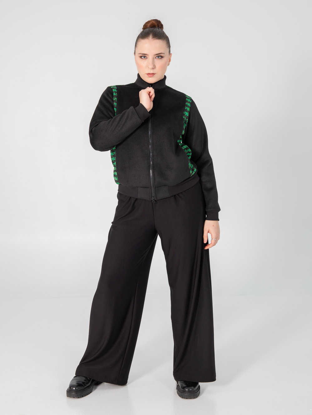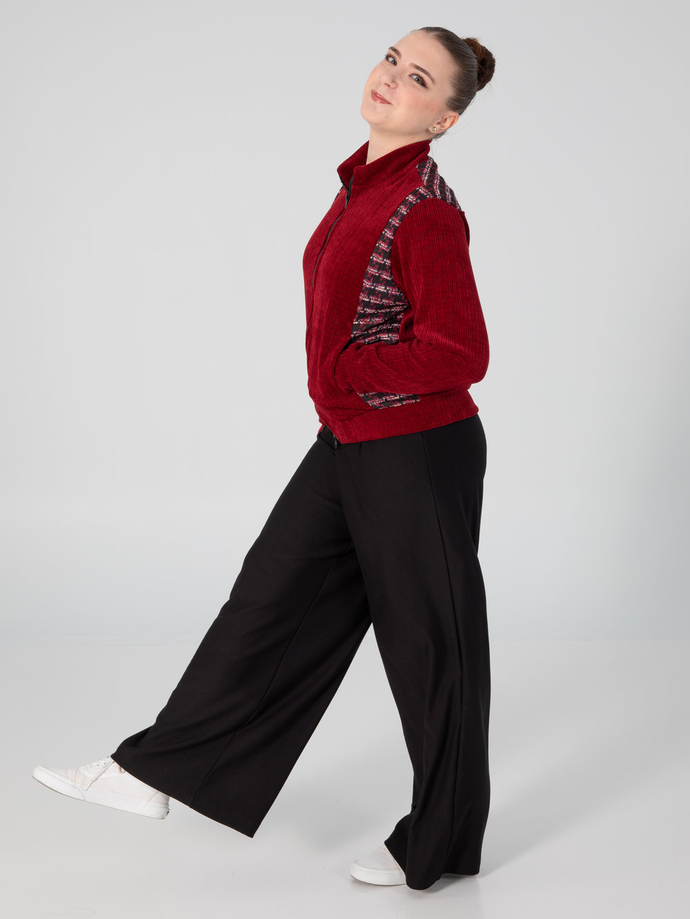 Fabric: black: 80% poly, 10% viscose, 10% acrylic 50% poly, 47% acrylic, 3% spandex